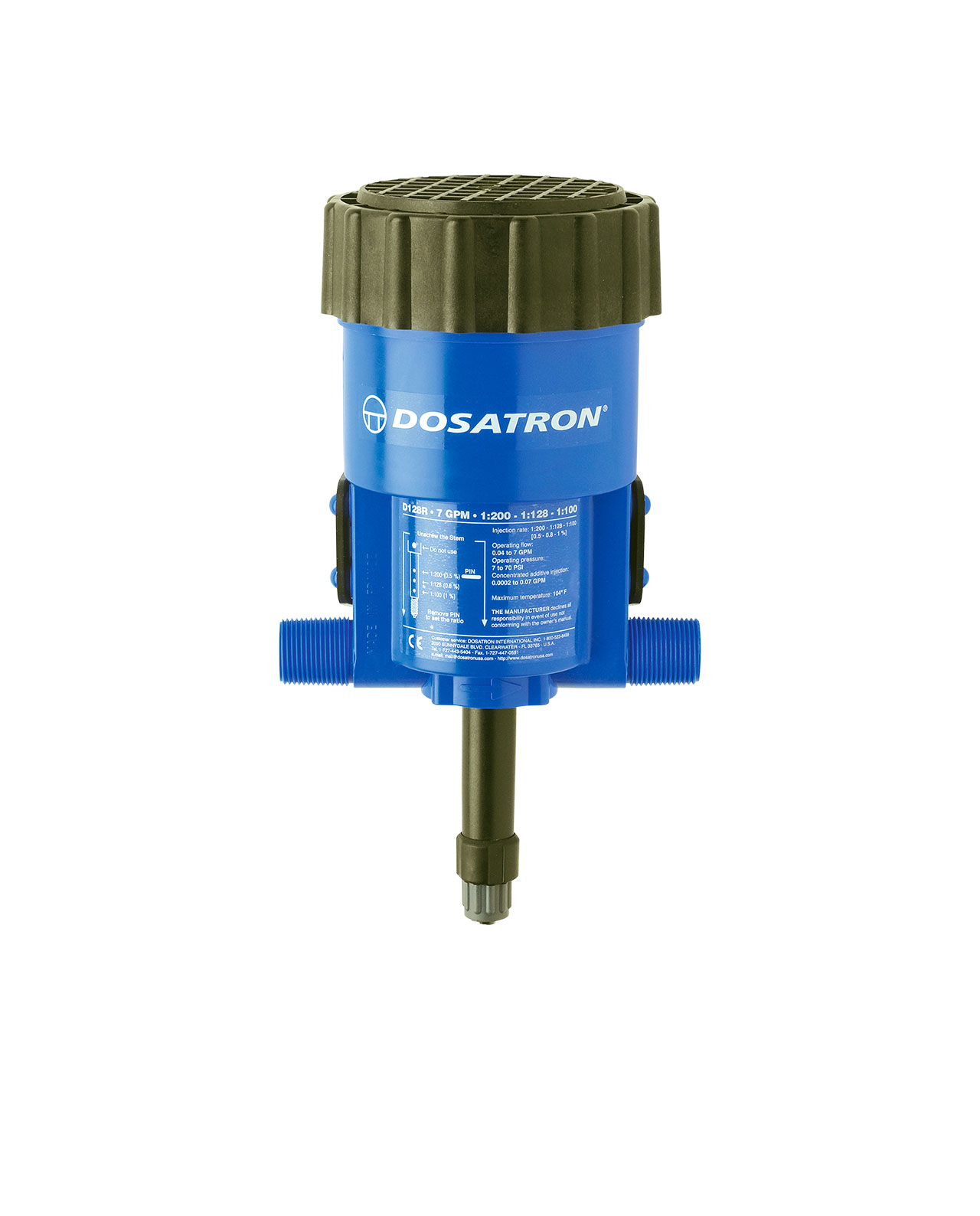 Water-powered Dosatron D128RVTII is the original flat top medicator used in animal health applications. It is well known for its dependability and ease of use with a flow range of 0.09 to 7 GPM and dilution range settings of 1:128, 1:100, and 1:200. To extend the life of your D128RVTII use rebuild kit #