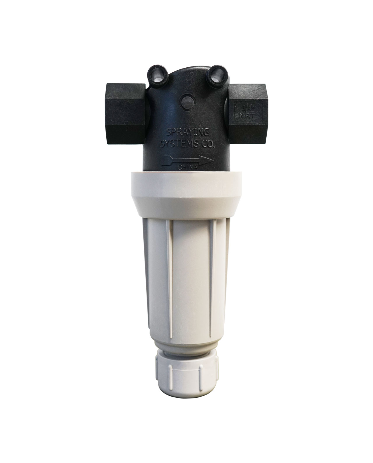 1″ FNPT T-Shaped Filter. Space-saving with flush port that can be adapted for easy clean out of the 3/4″ FPT ball valve. 200 mesh/80 micron.