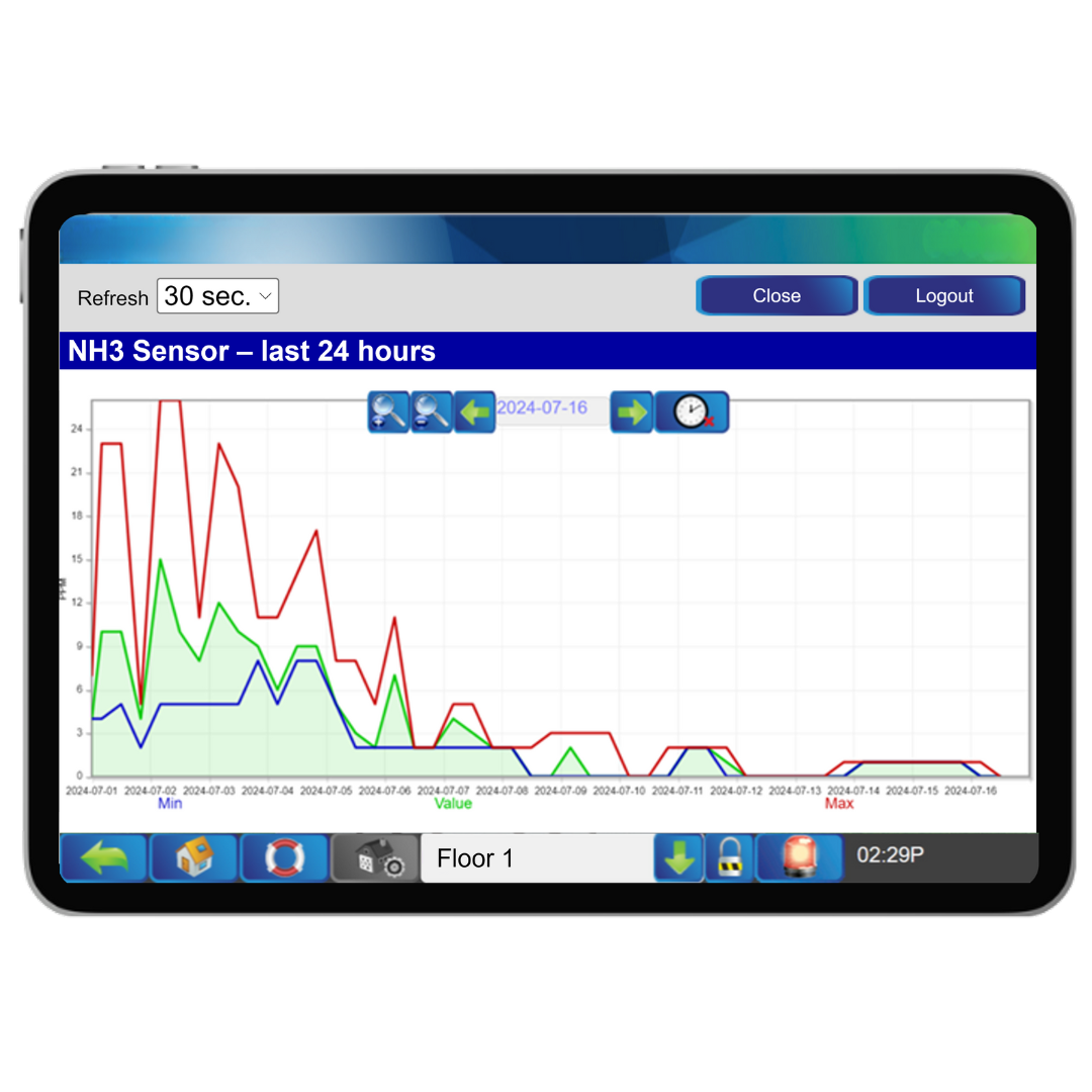 A healthy environment starts with the quality of the air your animals and workers breathe. By connecting an ammonia (NH3) sensor to the MAXIMUS controller, you get continuous measurements of the ammonia concentration in the air in your building. This data enables the controller to quickly adjust ventilation to maintain the ammonia concentration at the value you have defined.