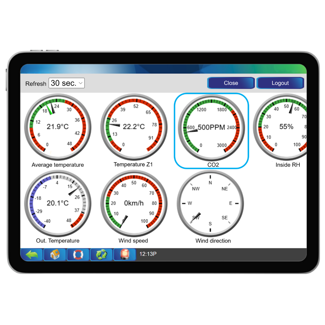 A CO2 sensor is used to measure and regulate these levels effectively. When integrated with a MAXIMUS controller, this sensor allows for real-time environmental monitoring and remote management, enabling quick and convenient adjustments to maintain optimal air quality from any location.